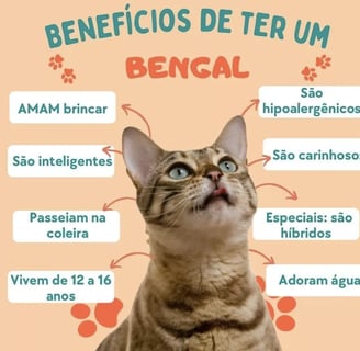 Os gatinhos de Bengala são conhecidos por sua aparência deslumbrante, com padrões únicos que lembram a beleza de Felinos Selvagem. Além de sua estética impressionante, eles são animais ativos e brincalhões, que trazem alegria e dinamismo ao ambiente familiar.