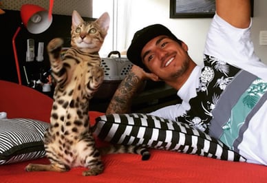 *Fonte O Globo Ed USO Aceitável.O surfista Gabriel Medina e Tyson: felino tem mais de 11 mil seguidores no Instagram Foto: Reprodução