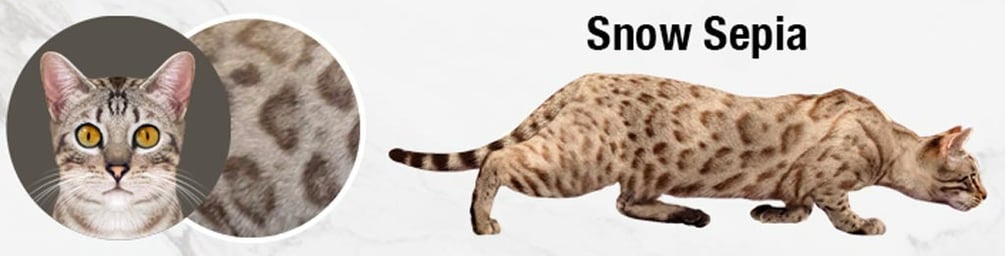 Pode ser complicado dizer a diferença entre essas três cores dentro do "Snow", pois são bastante similares. Um teste genético é sempre o melhor método para diferenciar os 3 Snow Bengals. Alternativamente e como apoio, as cores dos olhos podem ajudar a determinar qual o tipo de Snow Bengal.