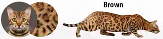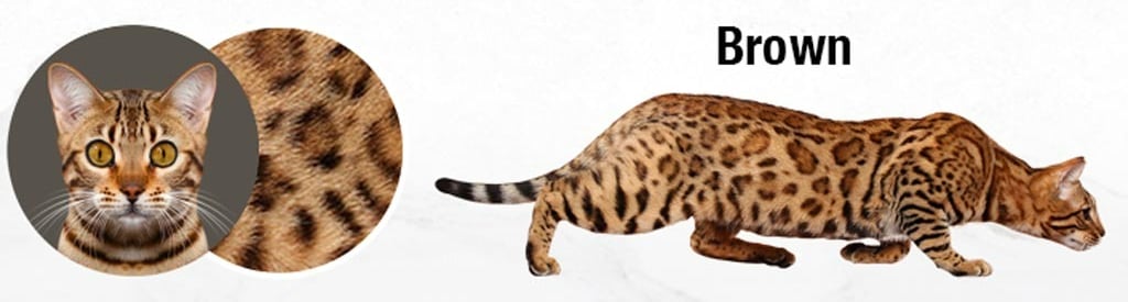 O gato Bengal Brown (marrom - genes de cor C, C) é o mais popular das cores do gato de Bengala e também foi o primeiro a ser reconhecido pela TICA em 1983.