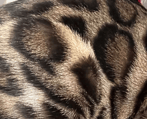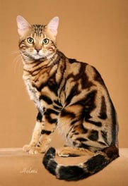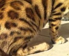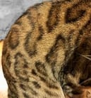 O padrão Spotted Tabby mais popular para um gato Bengal é o "Rosetted". Os pontos / marcações são chamados de rosetas quando as manchas são cores contrastantes de dois tons distintas da cor de fundo.