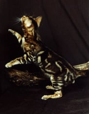 Os Gatos de Bengalas são o primeiro gato doméstico a ter brilho (glitter), mas nem todos os Bengals o possuem. Nós criadores, buscamos essa característica em todos os exemplares que adquirimos e também queremos passar esse brilho para os filhotes. Cerca de 95% dos filhotes que saem do nosso Gatil possuem o efeito "glitter".