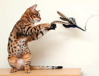 Entenda como “gastar energia”, diversas atividades com o Bengal, como jogos de caça, esconde-esconde, ter mais de um Bengal (poderão se divertir sozinhos brincando entre eles) e por que não, ter um amigo cachorro. Isso mesmo, Bengals são ótimos com cachorros e desde que apresentados de forma correta, serão amigos para a vida toda.