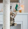 Existem muitos tipos de arranhadores no mercado e muitas formas de confeccioná-los em casa, o que pode salvar seus móveis. Para isso, preste atenção na altura do passatempo: para gatos filhotes, o poste pequeno pode funcionar, mas, ao crescer, o gatinho sentirá necessidade de se alongar e agarrar com as patas, portanto, precisará de um poste alto, que permita essa posição (arranhadores que tenham entre 90 centímetros e um metro de altura têm mais chances de fazer sucesso).