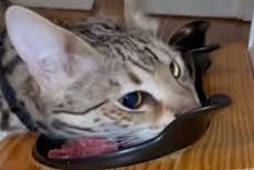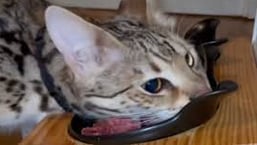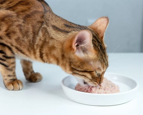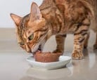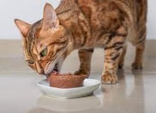 Misture uma colher de sopa de alimento úmido / sachê em 250ml de água e ofereça ao Bengal.