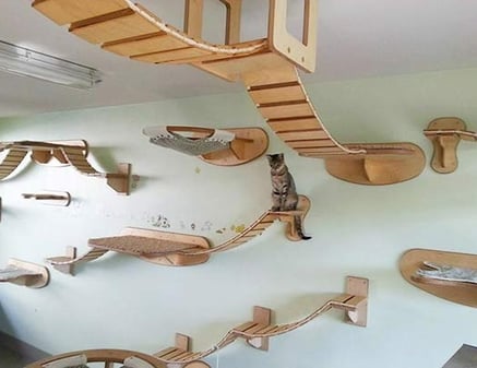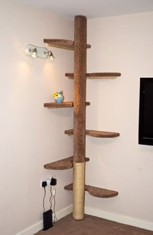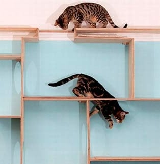 Outra maneira, mais bonita são os arranhadores e prateleiras feitos exclusivamente para gatos, como os modelos da Play Cat.
