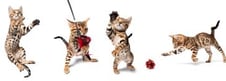 Eles diminuem um pouco o ritmo de filhotes após os 18 meses, mas mesmo assim continuam mais ativos do que outras raças de gatos. Essa é uma das qualidades mais legais dos Bengals, pois junto com sua energia vem a inteligência e curiosidade extraordinárias. Isso com cetreza requer algum tipo de interação para mantê-los estimulados e entretidos.