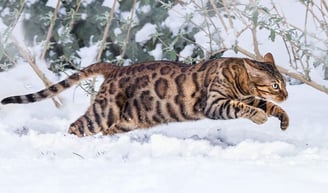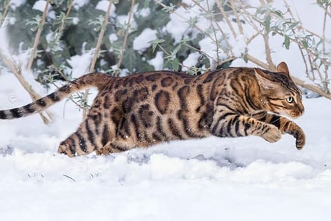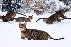 Os gatos Bengal são bastante adaptáveis ao frio. Em países do hemisfério norte é muito comum ver os Bengals andando pela neve, sem problema algum.