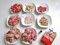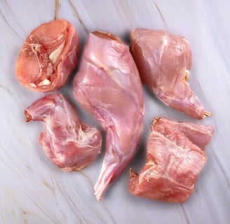 • Carcaça de coelho moída ou ossos carnudos crus de coelho moídos