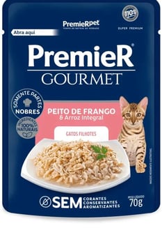 Atualmente existem diversos tipos de ração no mercado, vamos aqui falar de PREMIERPET rações Super Premium (pois não consideramos nenhuma ração inferior a essas capaz de suprir as necessidades fisiológicas de um gato) e rações úmidas, que são os tipos mais comuns e fáceis de serem encontradas.