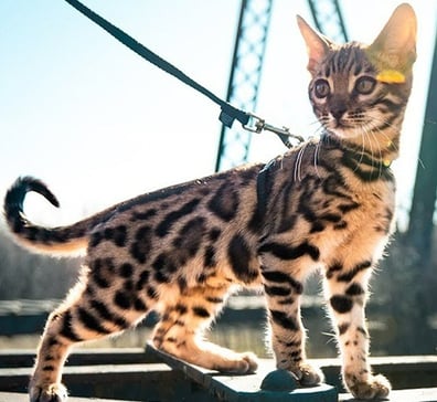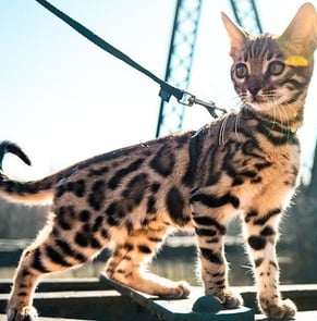 Por isso, se você quer passear com o seu gato Bengal, crie uma rotina desde filhote. Primeiro colocando o peitoral, depois de alguns dias quando ele se sentir confortável, conecte a guia e de passeios curtos por dentro de casa, nos quartos, em volta da mesa de jantar, na varanda, etc... Quando perceber que o seu Bengal está lidando bem com a guia e te seguindo pela casa, passe a treinar em um ambiente externo controlado ( pode ser salão de jogos, uma garagem fechada, quintal fechado, quadra fechada... etc....