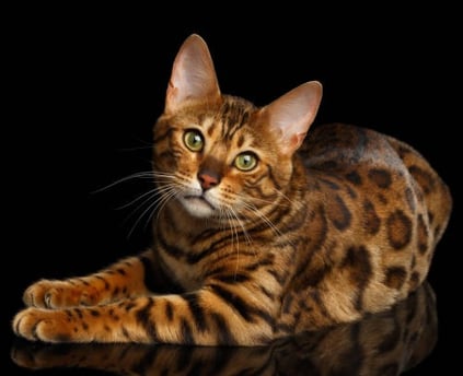 Bengal é um gato híbrido, cruzamento do pequeno Leopardo Asiático com um gato doméstico.